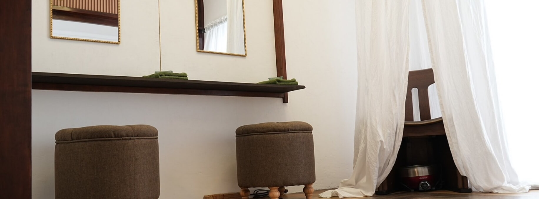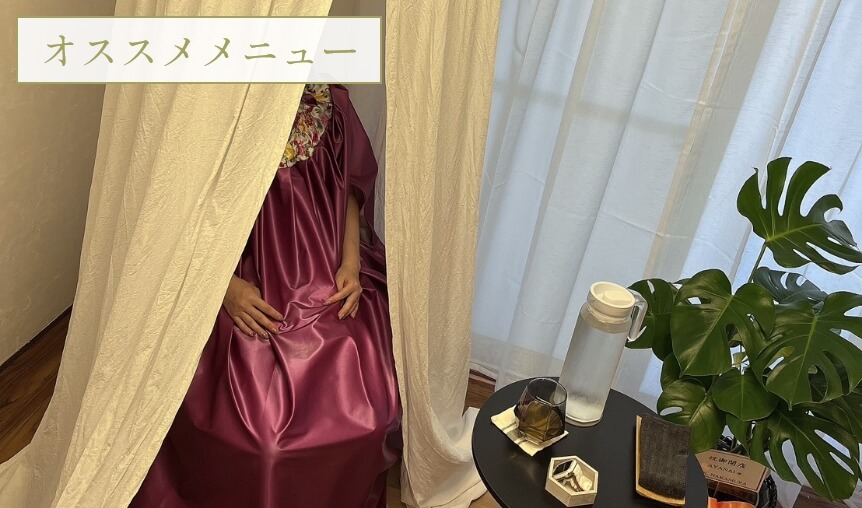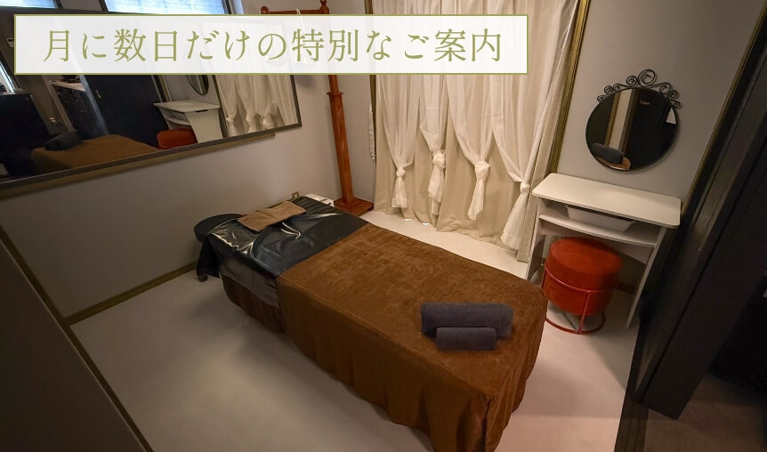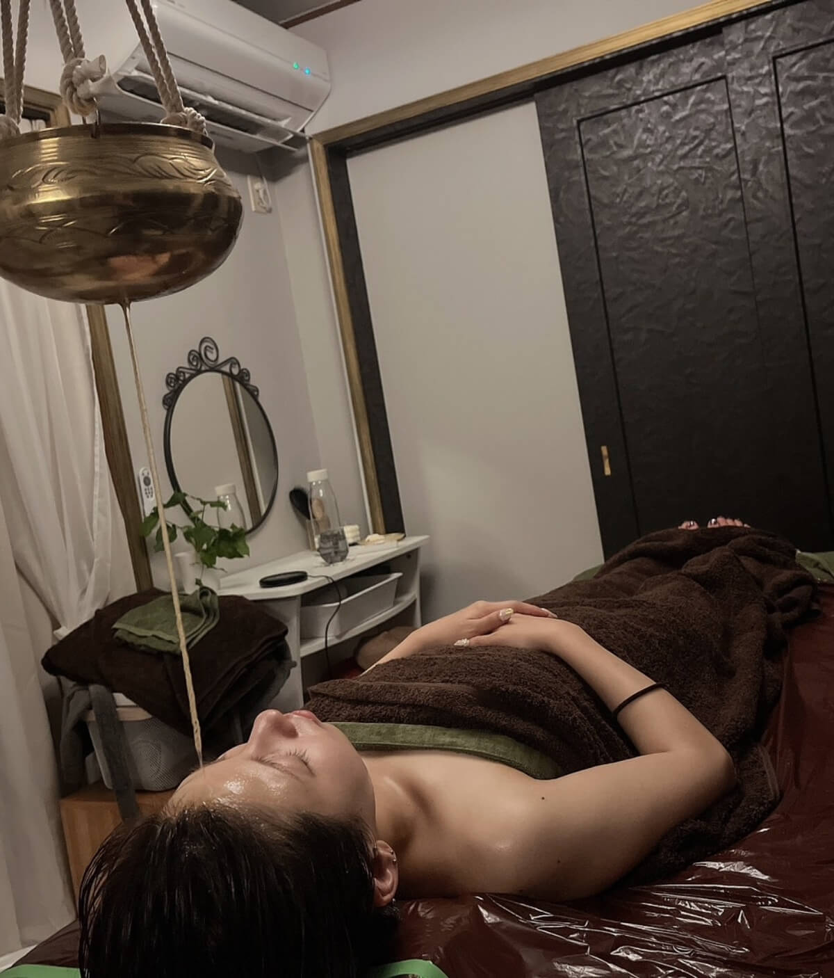 よもぎ蒸しに加え、月3日限定の完全予約制アーユルヴェーダ施術(シロダーラやドーシャ別オイルトリートメント)もご用意しています。